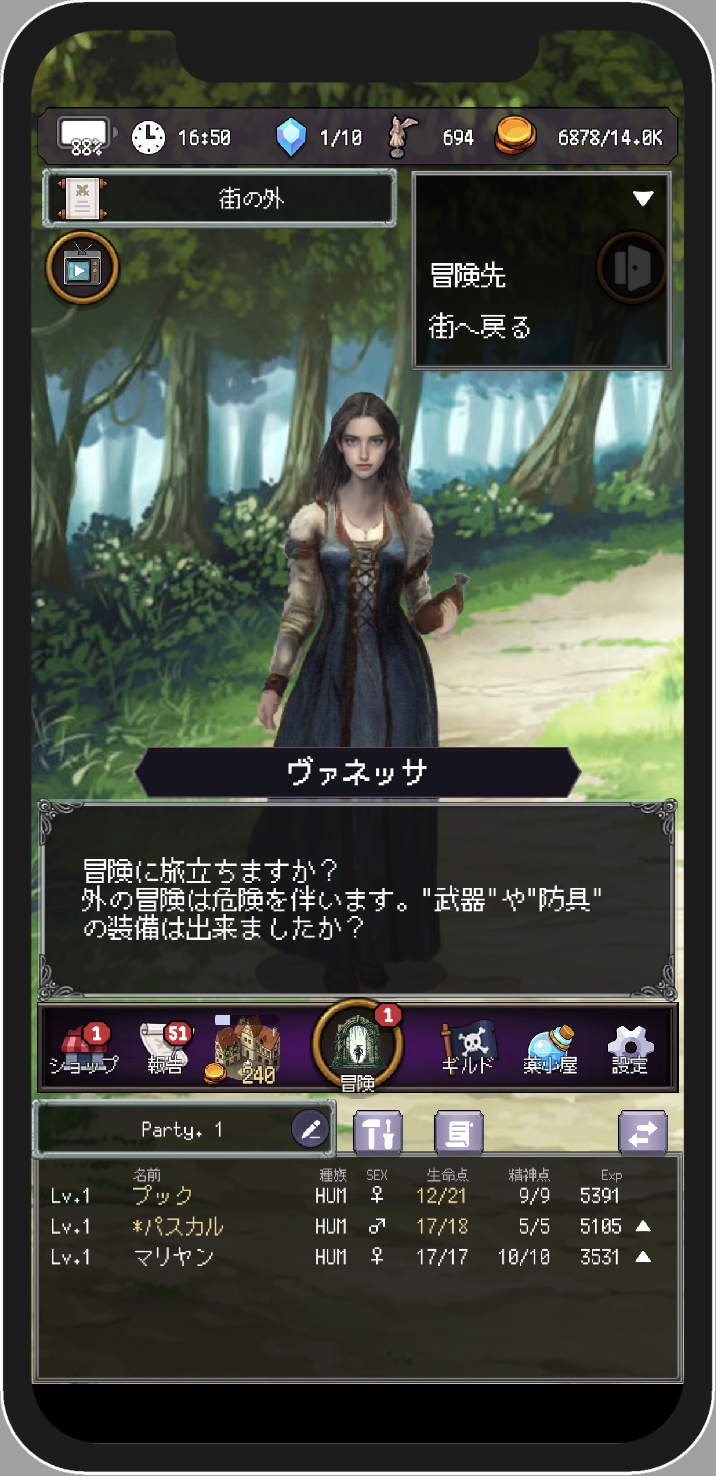 武器や防具の装備をせずに冒険に出るのは死を意味します。 冒険に出る前にチェックをしてくれるヴァネッサの存在はあなたの助けになるでしょう。