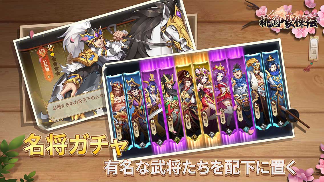 三国志で語られている名将が続々登場。関羽、張飛、諸葛孔明はもちろん……周倉、廖化も登場する。それぞれの武将が持つオリジナリティ溢れる天賦、スキル、策略を組み合わせ、天下統一の偉業を成し遂げよう!