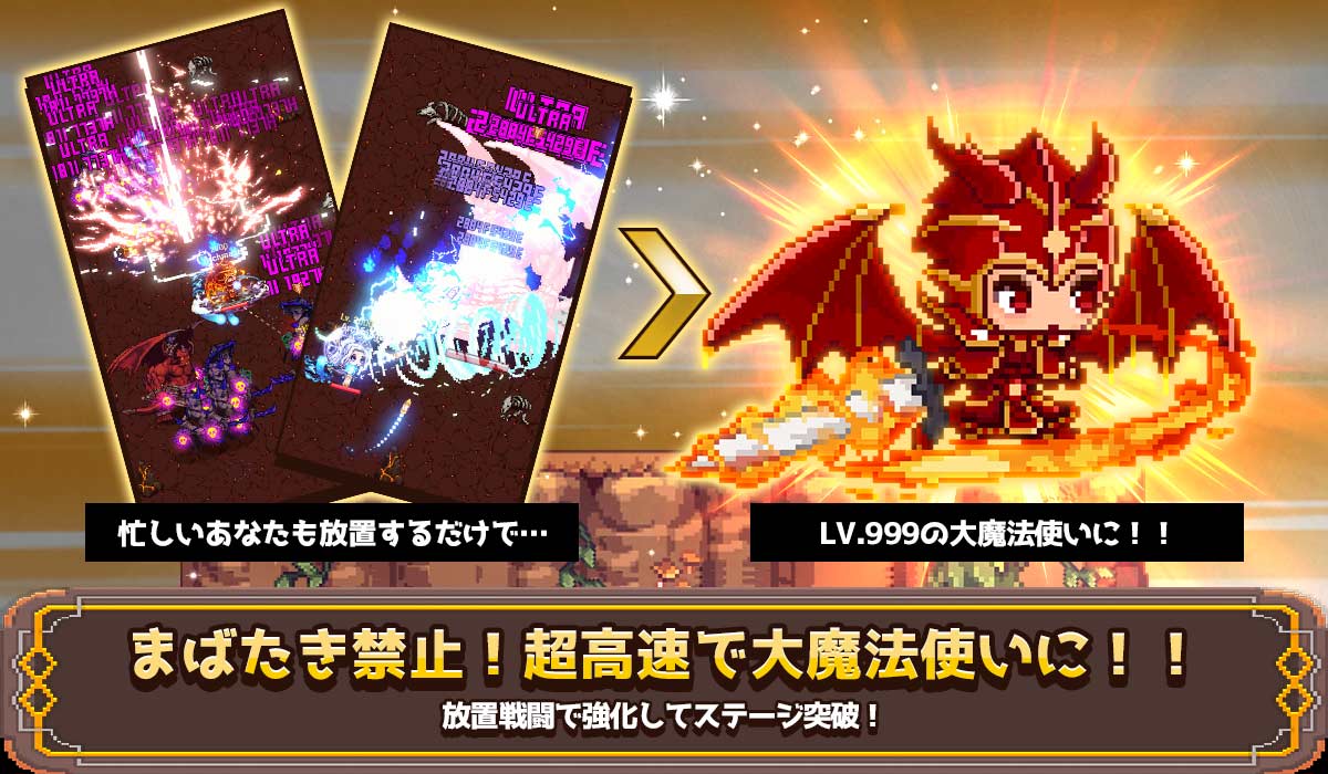 どんどん溜まっていく財貨で高速成長!圧倒的なダメージを与える最強大魔法使いを育てて下さい!!