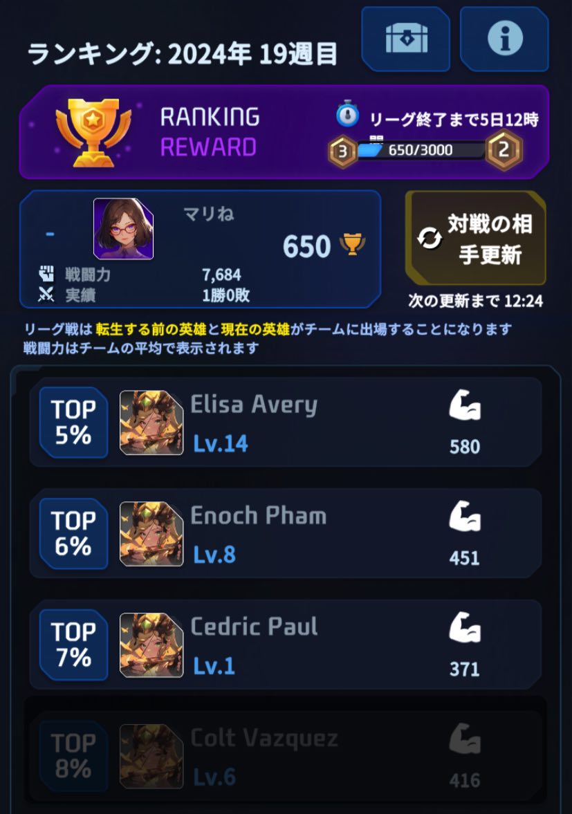 毎週行われるリーグ戦で、世界中のプレイヤーと競争 自分のスキルを試し、ランキングを上げるチャンス