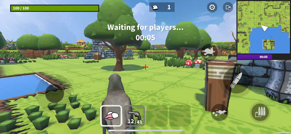 バトロワゲームでおなじみの試合開始前は、自由に動き回れる待機時間を設けています