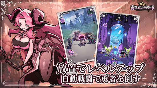 放置だけでどんどん報酬を貰ったり、レベル上げたりしていく爽快RPG。 指一本で出陣する魔物を選び、簡単に戦闘を実現!頂点への旅で襲ってくる勇者を全部倒し尽くしましょう。