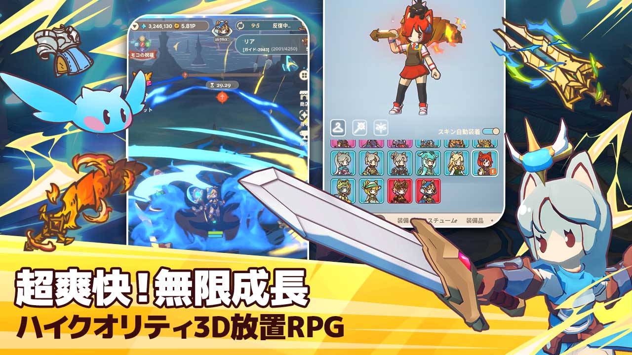 財貨を収集してスキル強化でモンスターを駆逐すると、あっという間に伝説の騎士に…?!パイの成長を見守りながら、豪華なスキル&アクションを楽しもう!