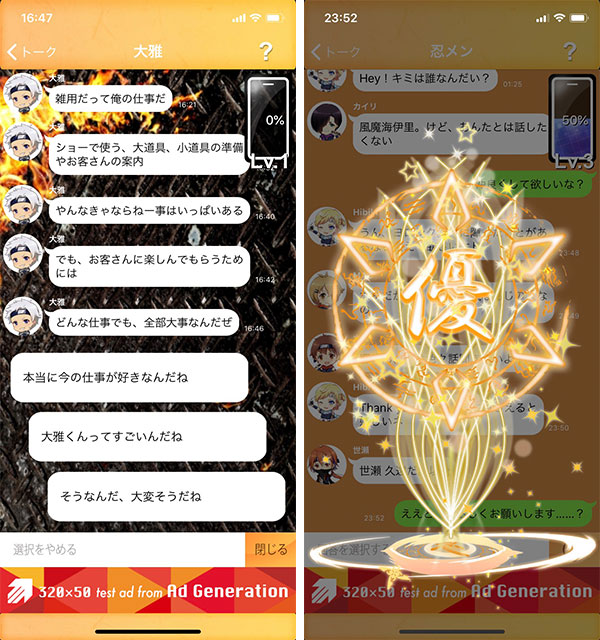 アプリのチャット機能を通じて、末裔男子と仲良くなろう。 グループチャットでは、禁断の男子トークもワチャワチャ展開!