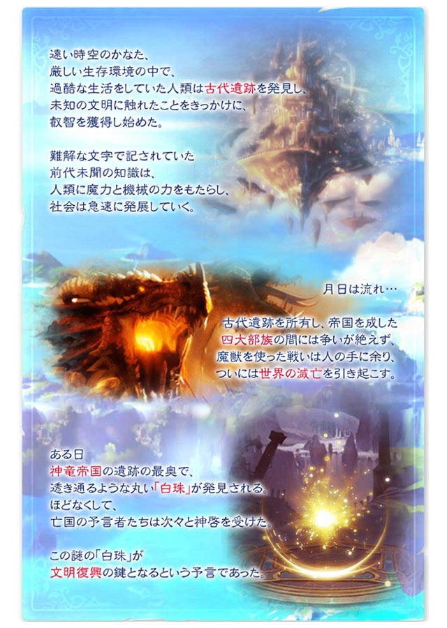 ■空島クロニクルの特徴 ・超簡単操作、フルオートバトルで放置プレイ! フルオートバトルで楽々!歴史上の帝王たちを、簡単操作で思いのままに育成し、最強の帝王をあなたの手で作り上げよう! ・育成コンテンツが戦力を左右! 主人公と帝王、異なる二つの育成システム!独自の強化機能も多数搭載!育成すればするほど、ガンガン戦力もUP! ・5大職業&豊富なスキルでバトルを楽しもう! 帝王は、戦士、騎兵、刺客、弓士、魔導士の5大職業に属し、好きな職業を選んで出陣可能!多種多様な帝王スキルを駆使して、敵を一網打尽にしよう! ・無限に遊べる多彩なコンテンツ!  条件を達成すると、迷宮挑戦、BOSS戦、競技場、博物館などが次々開放!空島の旅をどう楽しむかは、全てあなた次第! ・文明建設で世界各時代の栄光を再現! 世界各地を探険しながら、文明の破片を集めよう!かつて栄えた文明を、あなたの手で蘇らせよう! ■世界観 空に浮遊する島を舞台に、繰り広げる冒険ファンタジーRPG! 歴史上の偉人【帝王】たちを召喚して共に冒険の旅に出かける! 5大職業&豊富なスキルで自分だけの最強陣営を編制し、 文明探索と建設で人類の文明を再現する! そして仲間と協力で腕を磨きながら冒険を楽しもう! ■推奨環境 iOS 9以降 / Android 6.0以降