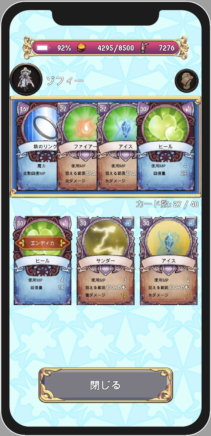 持っていくカードは5枚まで。 前衛に攻撃カードを集めて、後衛は回復カードで援護するなどの戦略練れる!