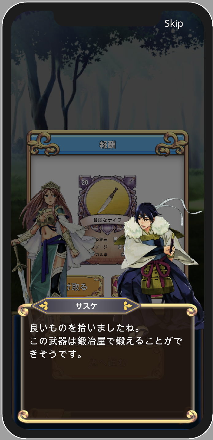 「サスケ、わらわは魔王を倒すぞ!」 「姫様、またですか...!?」 姫様と一緒に爽快なバトルを楽しもう! このゲームはスマホに合わせた手軽な戦闘を極限まで楽しんでもらうように考えて作りました。 隙間の時間を使って爽快に楽しもう! 敵と戦って得た装備を使ってカードを使って敵を撃破する爽快感がたまらない! 各キャラクターに合わせたジョブxカードの組み合わせを発見してどんどんバトルを楽しもう! お城で退屈をしている姫様。 魔王を求めて旅を始める姫様。(本当に魔王なんているのか?) 姫様に働いて欲しいサスケと姫様の二人が繰り広げる壮大(?)な物語がここに幕を開ける。 是非、一度このバトルシステムを味わってください。 ※前作を遊んでなくても楽しめます!