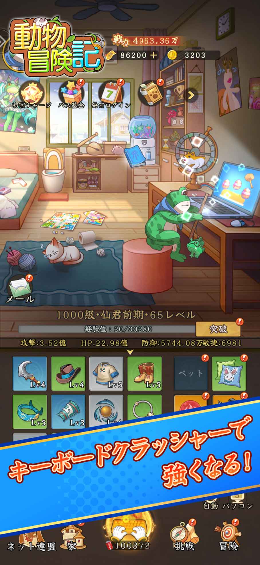 冒険には修行がつきもの!インターネットの世界なら、キーボードを叩いてこそが正義! ネット中毒の動物たちと一緒にキーボードを叩いて強くなろう!