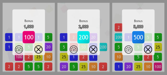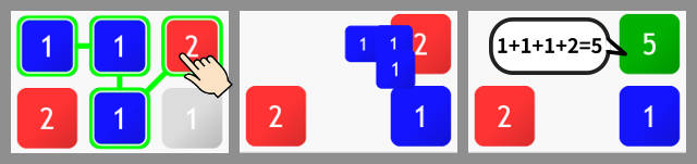 数字をなぞって足します。 合計が以下の値になると合体します。 合体した数字はなぞり終わりの場所になります。 2,5,10,20,25,50,100,200,250,500,1000...