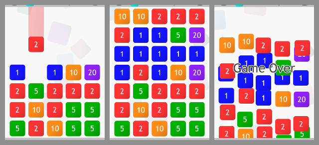 上から数字が落ちてきます。 数字で埋まってしまうとゲームオーバー。