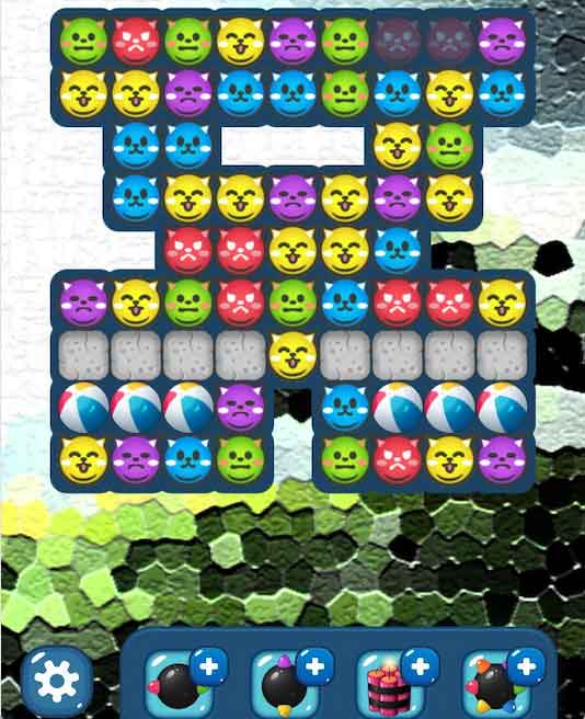 ■ 5個の場合 → 水平ボム: 水平方向のブロックを全て破壊できます。 → 垂直ボム: 垂直方向のブロックを全て破壊できます。 ■ 6個の場合 → ダイナマイト: ダイナマイドを囲んでいる周り8個のブロックを破壊できます。 ■ 7個以上の場合 → カラーボム: ランダムな色の猫を破壊できます。