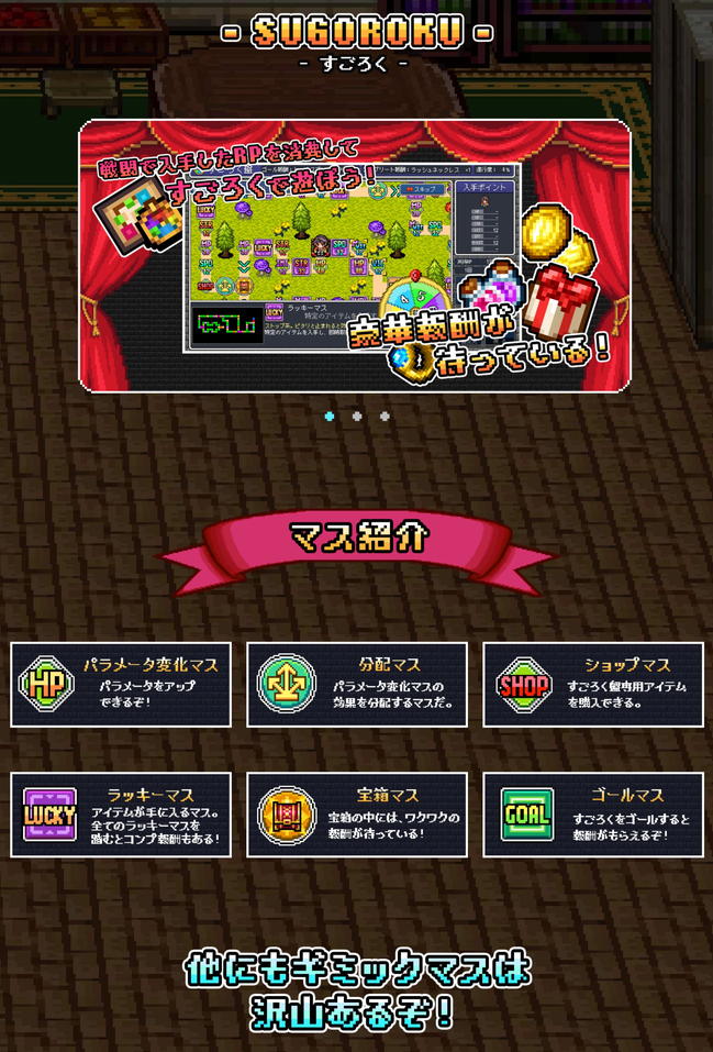 ”すごろく”であそびながらキャラクターのパラメータを上げることができます。
