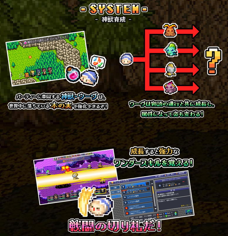 神獣を育成することで様々なスキルを覚えていき、 戦闘時にそれを発動させることができます。