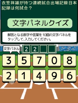 解答となる数字や言葉を10個の文字パネルをタップして、入力してください。