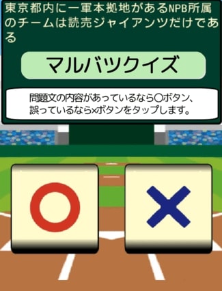 問題文の内容があっているなら○ボタン、誤っているなら×ボタンをタップします。
