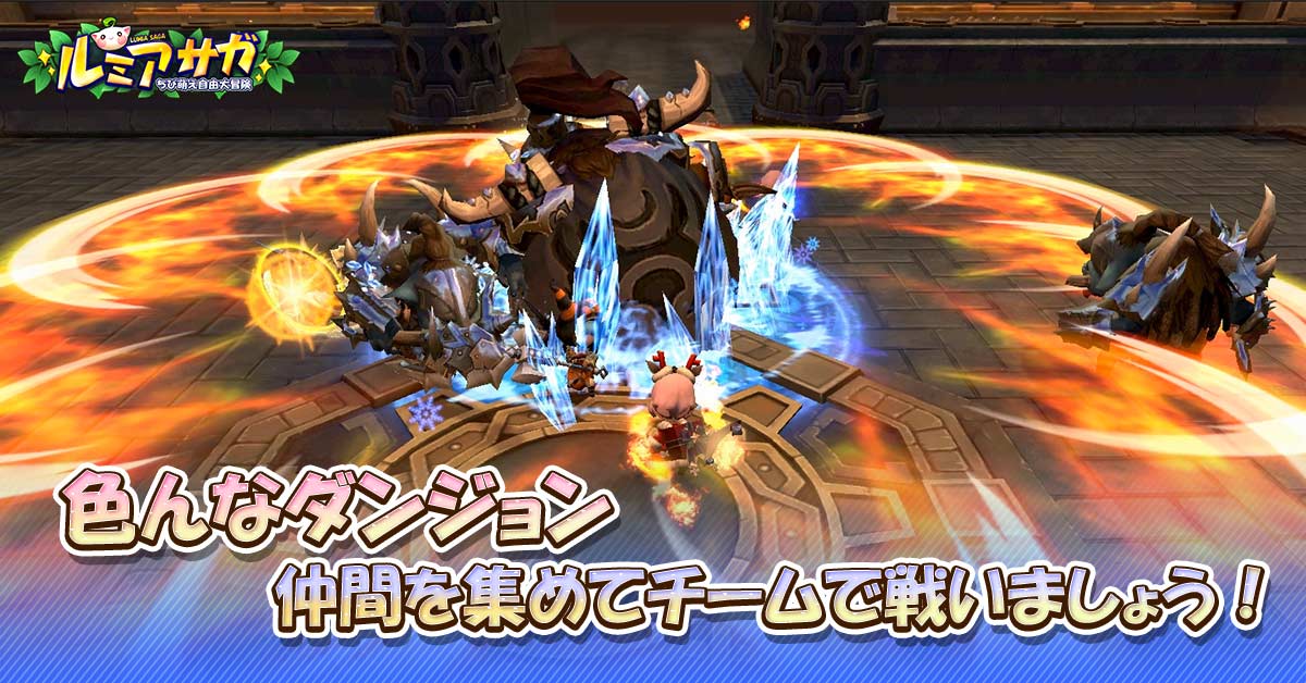 『ルミアサガ』x『小林さんちのメイドラゴン』コラボ決定!! 事前予約人数が30万人達すると、コラボ限定アイテムを全員にプレゼント! 『ルミア サガ-ちび萌え自由大冒険』は、友達と一緒にプレイできる超可愛い3DMMORPGです。可愛いキャラクターたちは、あなたのハートを一瞬でメロメロにしちゃいます! もちろん、ただ可愛いだけじゃありません。やり込み要素も満載です! ひとつの装備につき、百種類の組み合わせができる魔核システムで、ファッショナブルな自分だけの装備を作ることができます。また、ワンタップジョブチェンジ・システムでは、10種類の職(ジョブ)を自由に選択できます。もちろんゲーム内でギルドを創立することも可能。ゲーム友達との絆を深めましょう! また、ミニゲームも豊富にご用意! 釣りに料理、採掘…などなど、バラエティー豊か! さっそく仲間と一緒に、萌えカワイイ冒険の世界で探索しましょう! 【萌え度MAX、勇者が可愛い】 ポッチャリお顔に、ちょこまか動く手足。こんなカワイイ勇者でごめんなさ〜い! さらにカワイイ勇者を目指したいなら、元気ッ子、ツンデレ、ツインテールなど、どんどんカスタマイズしちゃいましょう! 有名な声優さんのボイスを追加できますよ! 【装備自由、超萌えご自慢】 独自の魔核システムは、ひとつの武器に最大3つまでアクセサリーを装備することで独自の装備を作れます。アクセサリーの素材は海や山から集め、数え切れないほどの組み合わせができます。 【友達との絆でボスを倒そう】 世界に点在する大ボスに挑戦するときは、友達と一緒に戦いましょう。友達と共にギルドを創り、絆を組むのです。あとは、自慢の装備に身を包み、友達と一緒に戦いの歴史を築こう! 【自由気ままにファッションを楽しもう】 ファッション命という人にはうってつけ! 百種類の衣装をご用意! 制服にメード服、バニーガール服など、いろいろ着替えて楽しんでください! 【カジュアルに冒険やパーティーを楽しもう】 萌えマウントに乗って、萌えモンスターを倒し、なんでもありのままに萌える! これが本作の超萌えのんびりプレイスタイル。跳びぴょん、並び座り、水銃大作戦、鯉釣り、みんなと一緒に遊びましょう!