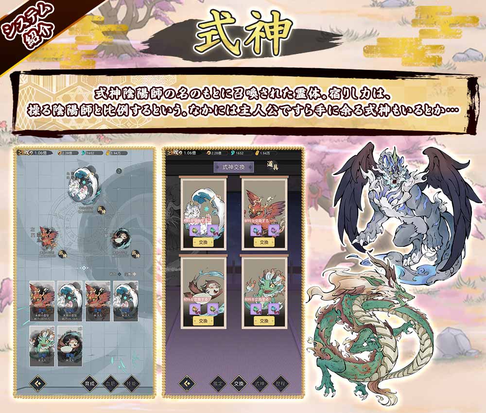 【人と妖の争いに終止符を!】 プレイヤーは人と妖の血を引いた陰陽師となり、陰陽術と式神を用いて妖族と戦っていく。 手動かフルオートで資源を集め続けられる。 戦力が揃ったらボス戦に挑もう。 【人と妖の世界で勝者となろう!】 陰師か陽師の道、どちらを選択するか!?思うがまま陰陽道をきわめて、 平安の式神たちを集めて、強力なボスを打ち破れ! 【人族と妖族の個性豊かな登場人物たちと交流しよう!】 ここは人と妖が長い間争ってきた平安世界が舞台。 人と妖の血をひく主人公が兄弟子、安倍晴明と共に人と妖の争いに立ち向かっていく。 日本の古い伝説「百鬼夜行」に登場するおなじみの妖怪たちも続々登場! 【これまでにないハックアンドスラッシュのような放置型バトル!】 妖怪がうろめく様々な舞台に飛び込み、らくらく資源を集めて強化材料を増やそう! 集めたアイテムで酒造を行い、自分の境界や属性を高めて、戦力を大幅に増加できる。 戦う以外に、座禅で修練して経験値を取得し、陰陽師として新たな境界に達成可能! 陰陽師の業だけでなく、様々な獣、妖怪、神秘な神を式神を仲間に加えて、戦略を高めよう! 【こんな方におすすめ!】 ・空き時間に片手でストレス無くプレイしたい ・妖族がそぞろ歩く平安の舞台で活躍したい ・陰陽師を一から育成していきたい 推奨環境 iOS: 12.0以上 Android: 8.0以上