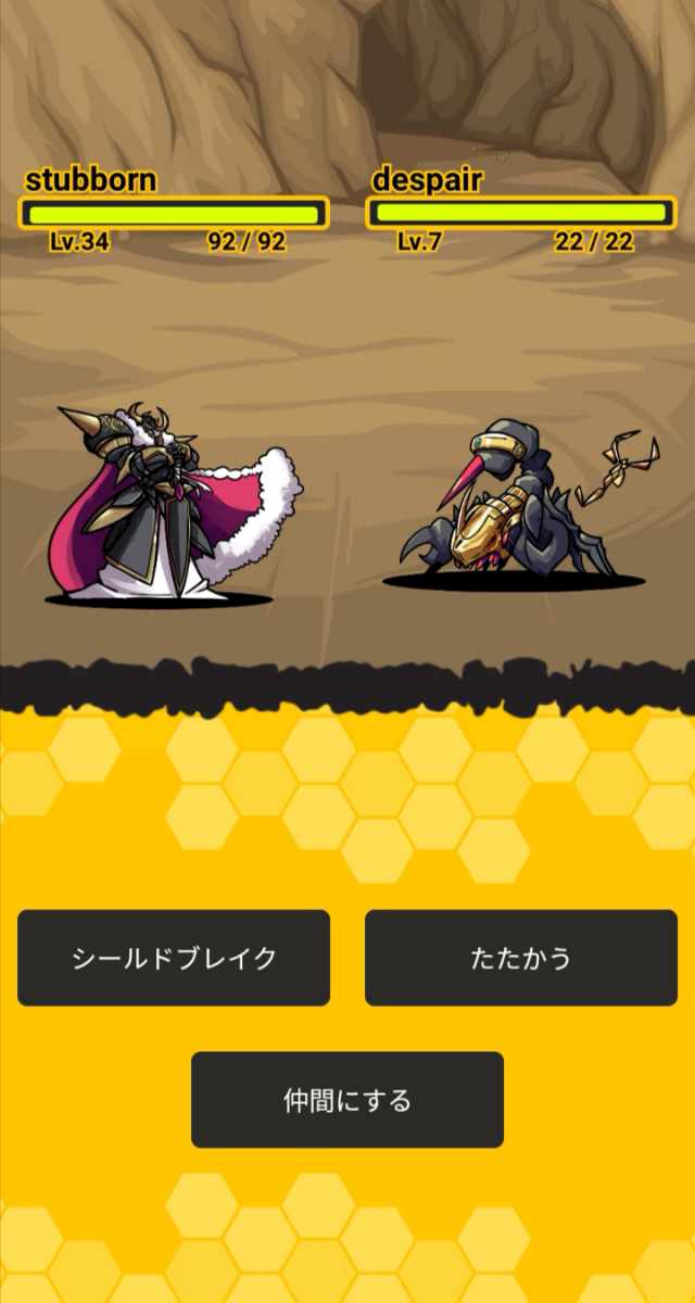 バトル開始時、相手モンスターの防御力は高く、通常攻撃では少量のダメージしか与えることができません。 シールドブレイクコマンドを実行し、相手モンスターの名前の「意味」を8択から選択し、正解すると相手モンスターの防御力は低下し、高ダメージを与えることができます