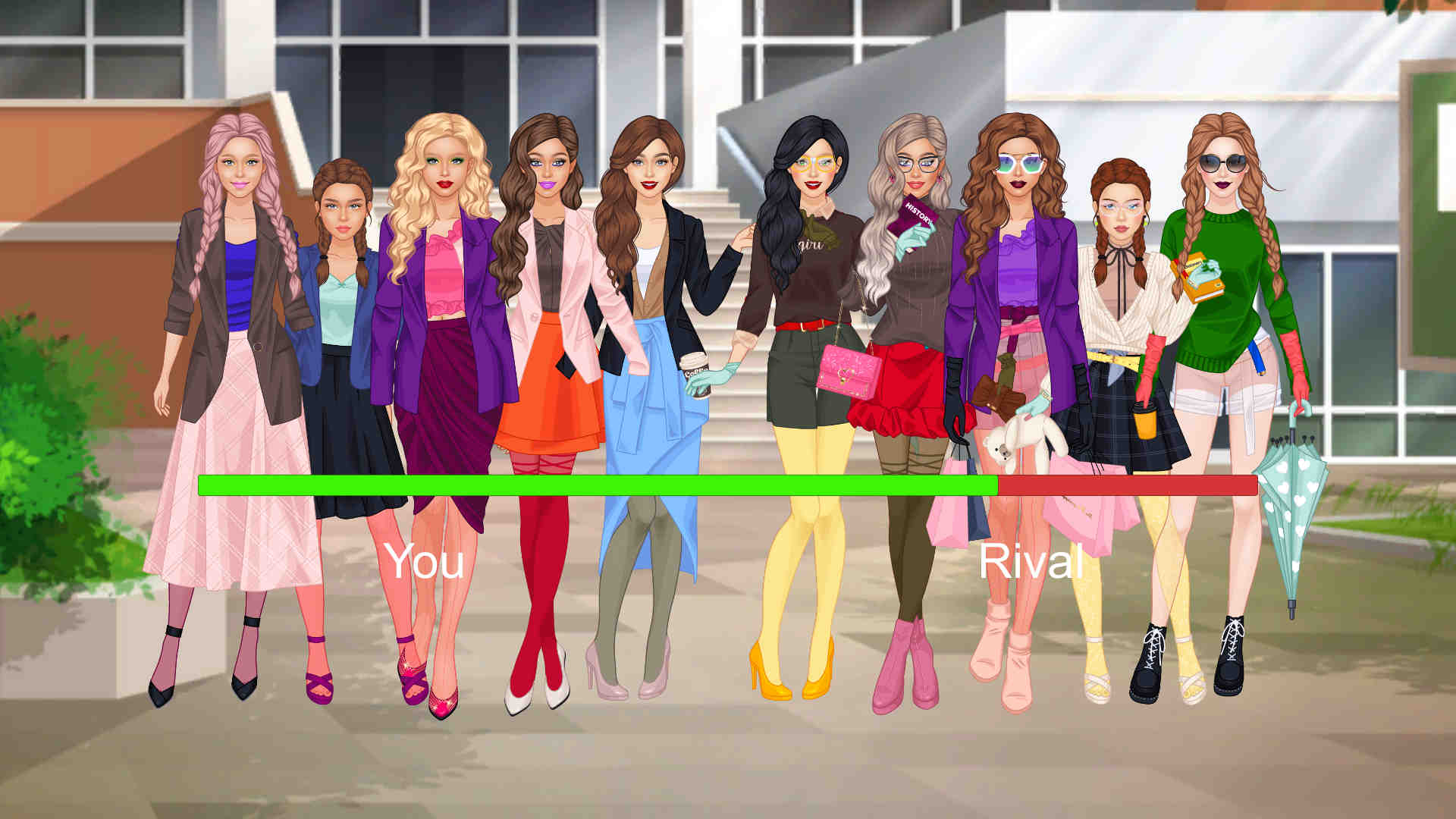 5人の服装やアイテムなどを選んで、着せ替えが終了すると、他のグループのバトルをすることができます。 ランダムに現れる5人組と競争します。