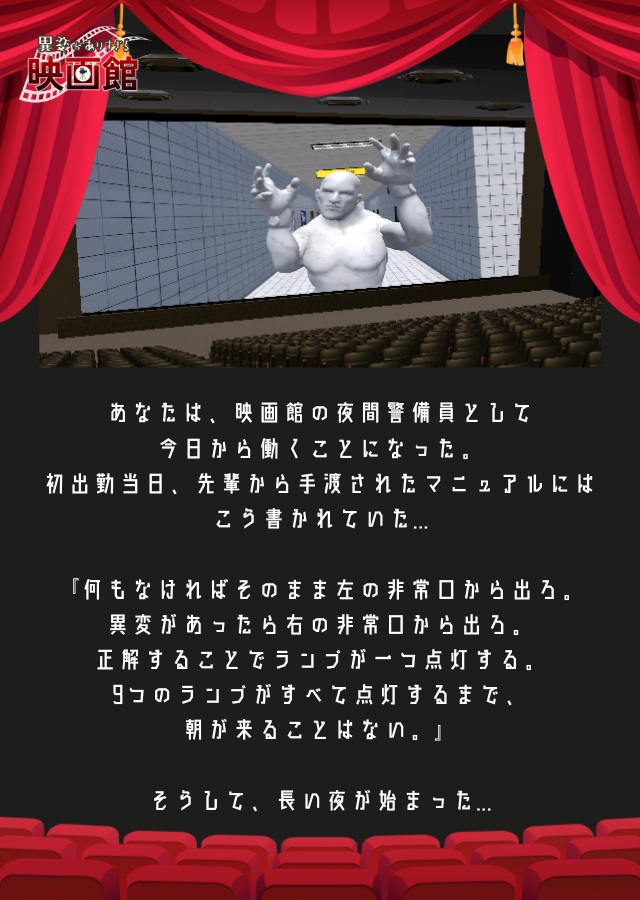 | タイトル | 異変がありすぎる映画館〜スマホで遊べる8番出口ライクゲーム〜 |
