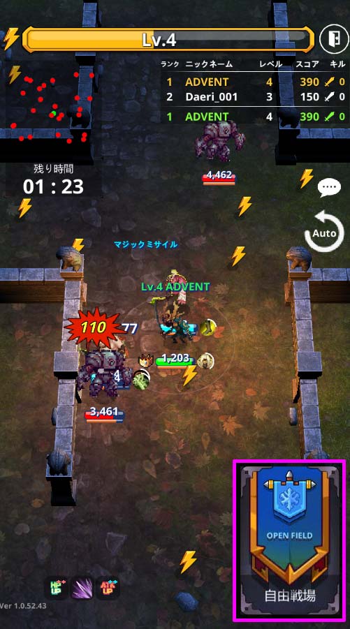 他のプレイヤーと協力して、制限時間内にボスを倒してください!