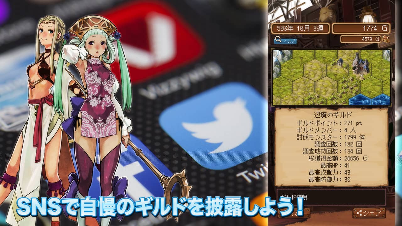 自慢のギルドの発展具合をSNSで披露しよう! Twitter、Facebook、Instagram、LINE・・・どんなプラットフォームでもOK!