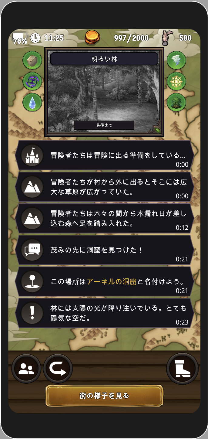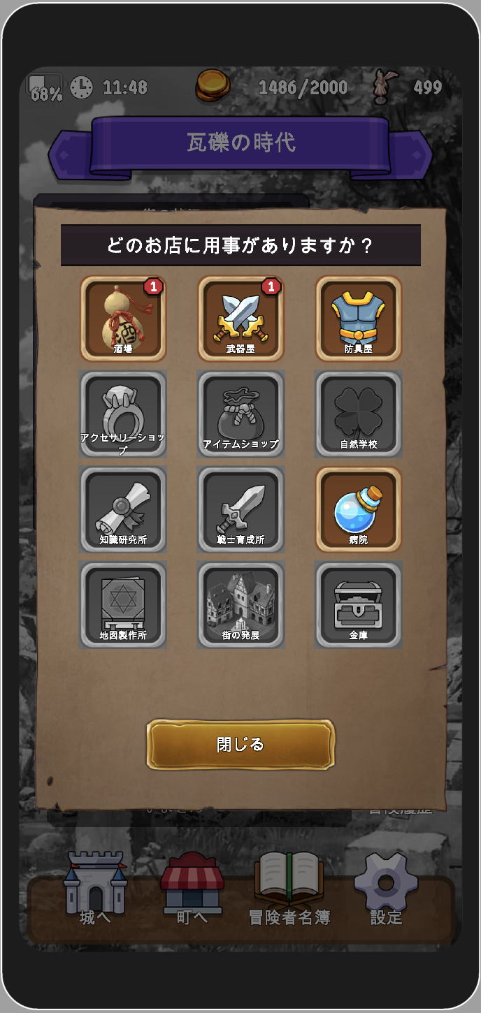 あなたは冒険者を冒険に出して、そこで得たお金や素材を使って町を成長させていくことができる。 町が成長するにつれて、より強い冒険者を育てることができるようになるだろう。