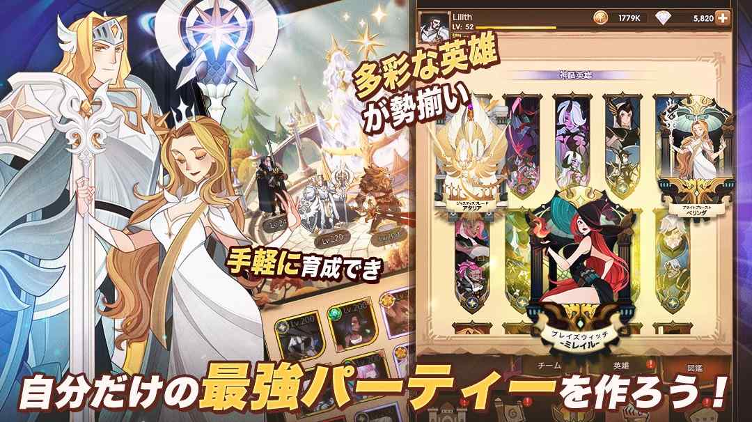 英雄×種族の組み合わせで、戦況が大きく変化! さまざまな戦況に合わせて自分だけのチームを編成し、勝利を目指せ!