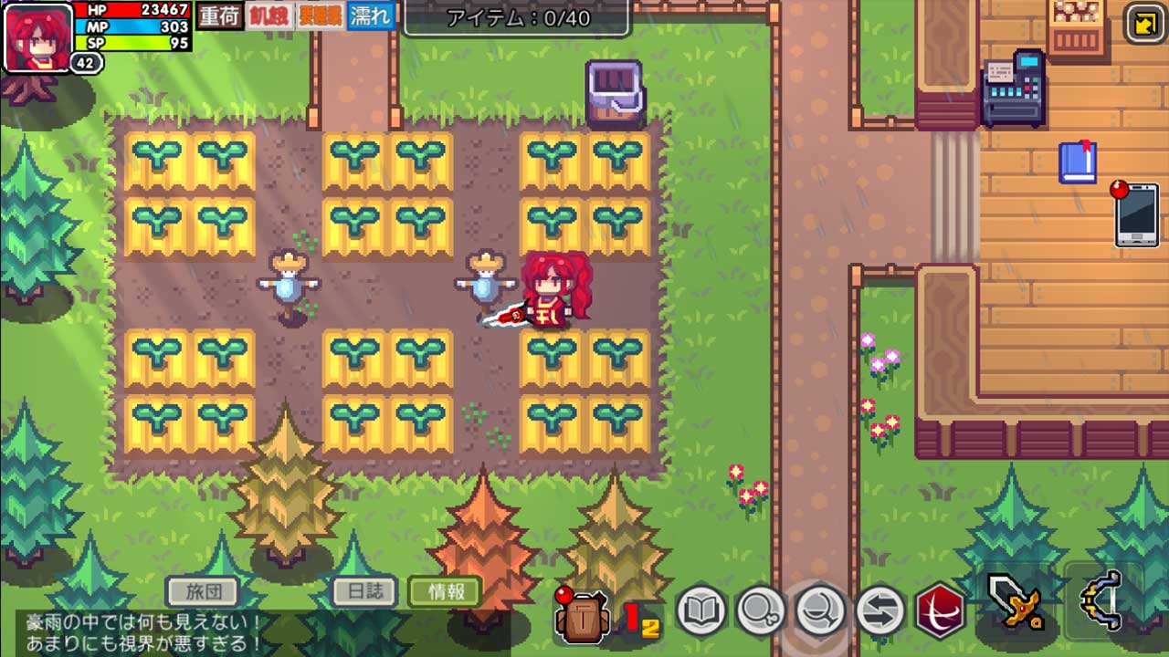 この大地に生きていくには常に危険と向き合わなければならない。つまり冒険です。種族と職業の組み合わせを考えながら、装備やスキルを厳選することで、生存率が跳ね上がります。とは普通のやり方ですが、なにせ「Elona」です。そのへんにいたNPCやモンスターを仲間にするのも一つの方法です。あらゆる意味で頭脳を駆使し、冒険を進め、富を築き上げましょう。