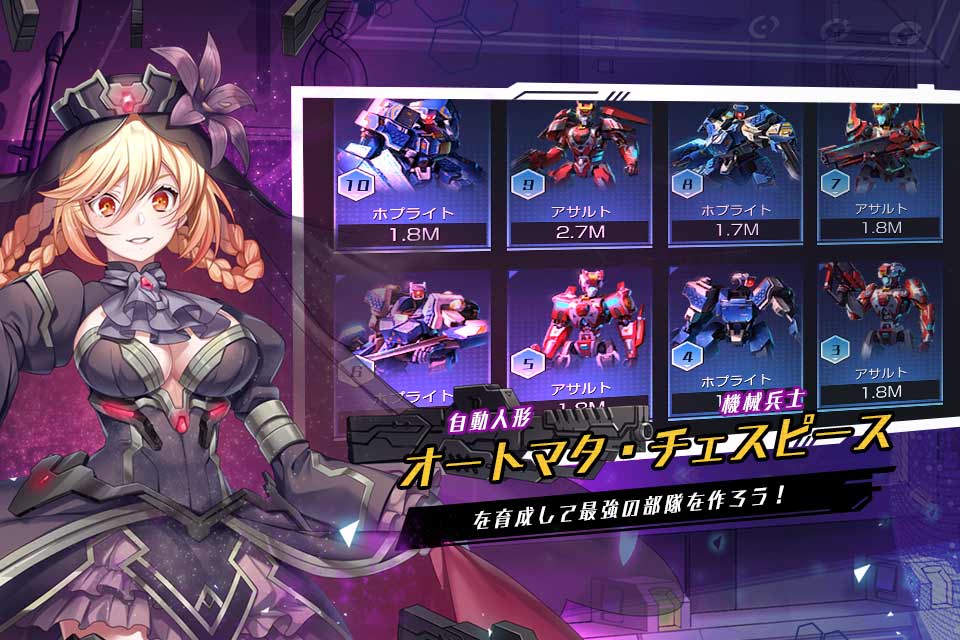 これは、オートマタ少女との出会いから紡がれる、超規模勢力のSF戦争物語。 個性豊かな声優陣が出演、フルボイスを楽しみながら物語を進める。 ※世界観について「ストーリー」にてご確認ください。