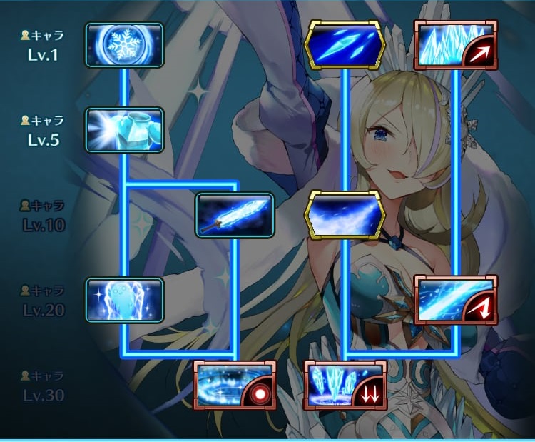 敵を凍結させ、行く手を阻むことができる防御に長けた遠距離魔法スキル。「アイスウォール」で敵の行く手を阻み、遠くから「ダイアモンドダスト」や「ブリザード」で一掃することで、敵を寄せ付けない安定した戦い方ができるようになる。「フリーズタッチ」はクリティカル発生時に敵を凍結させる強力なパッシブスキル。クリティカル率を高めることで氷スキルの安定性は更に増す。